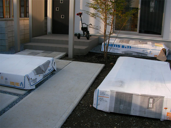 梱包を解くとあっという間に庭が部品だらけに・・・