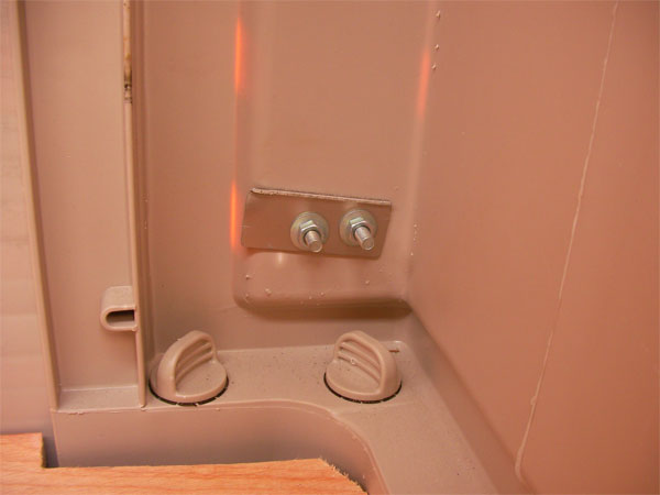 棚板受けの下にステンレス棒と