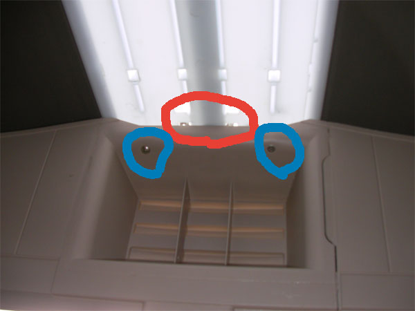そんなのイヤなので、青丸箇所にタッピングビスで締め付けてやりました。