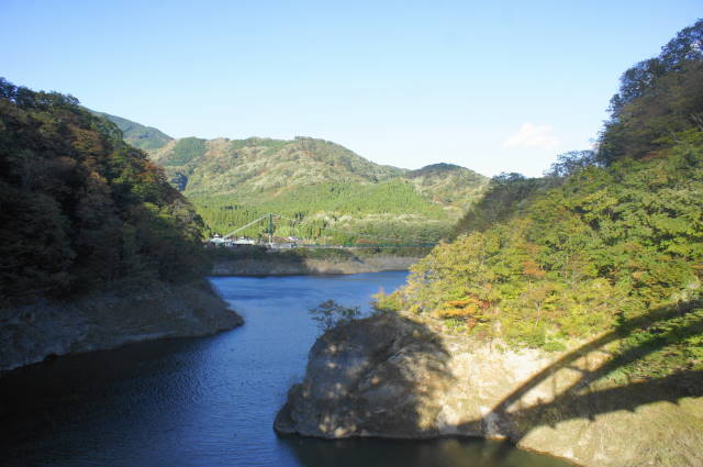 もみじ谷大吊橋の紅葉はまだっぽい。