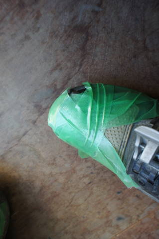 レーシングブーツのモザイクタイル製トゥースライダー。