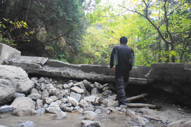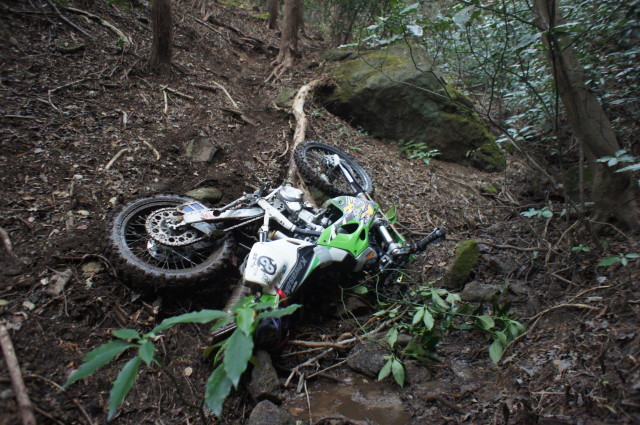 結果、まくれて小さな沢に真っ逆さまにドボン!