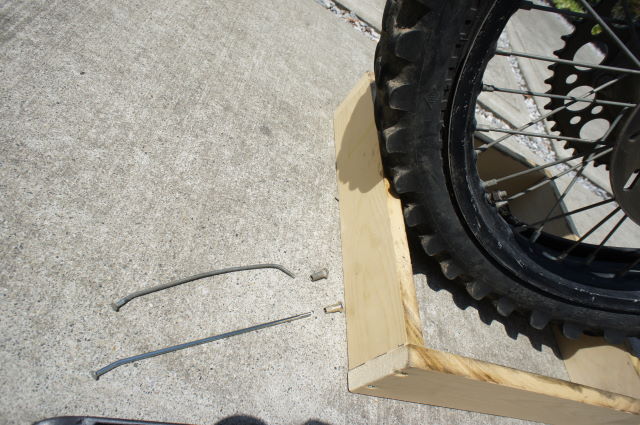 ちゃちゃっと、片側のビードを外してスポーク挿入!