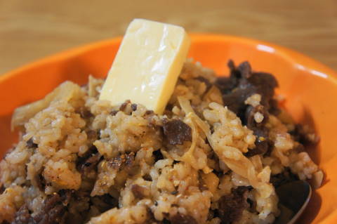 焼肉チャーハン作って、頂点にチーズをポンッ!