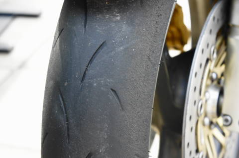 そりゃ~、完全にパンクしてりゃ~バイクもオカシくなるよ~!