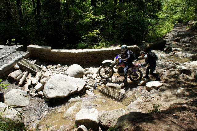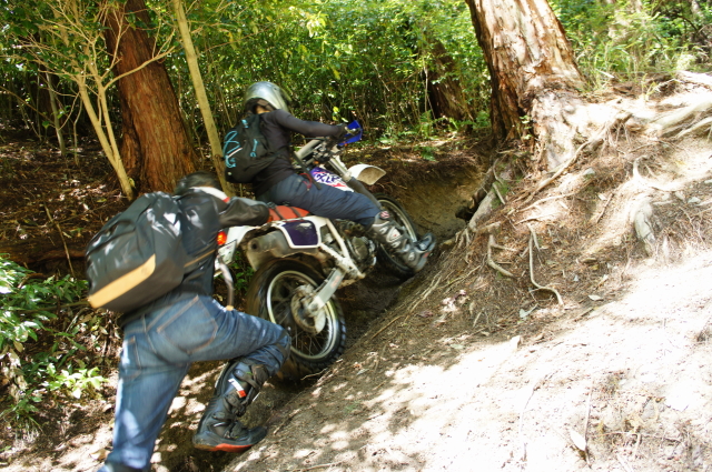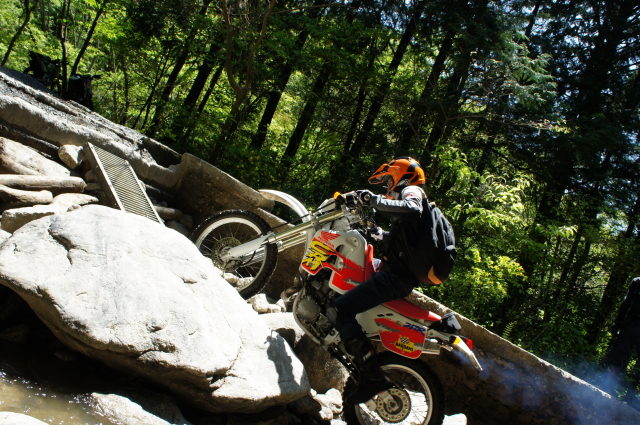 次の林道に入る前に、初期型CRM乗りのベテランっぽいライダーに遭遇。