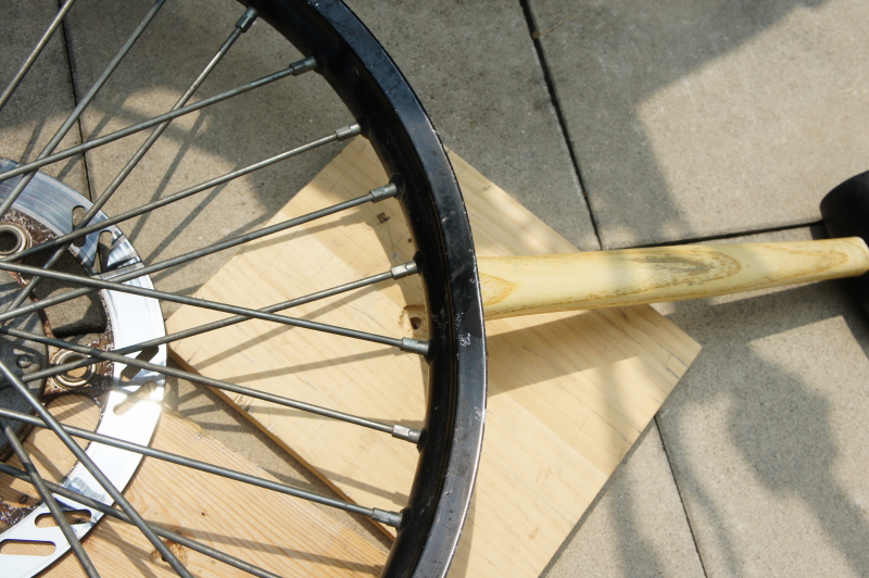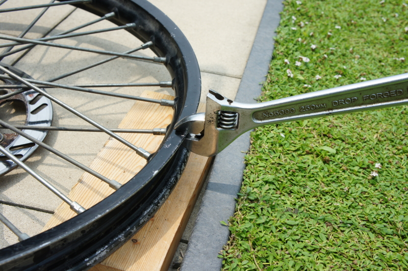 KLX250のフロントタイヤ交換&リム歪み修正