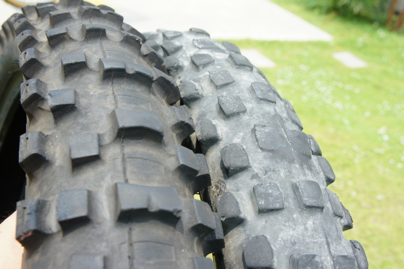 左:今回交換した ダンロップMX51F 当然中古 15800km