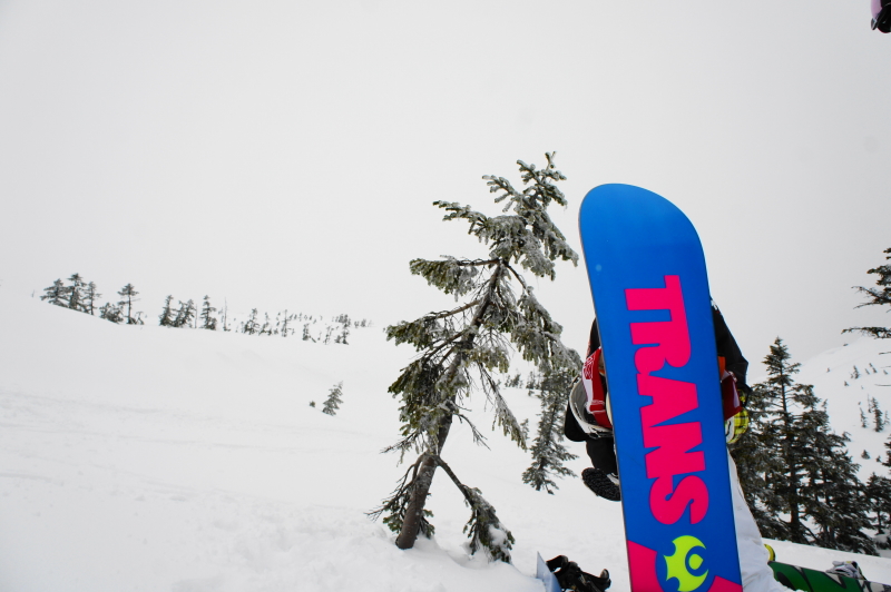 小雨もチラつくバットコンディション、全然板が走らん!