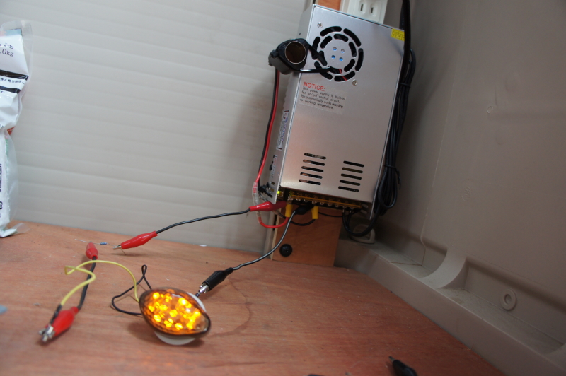以前買って、ガレージに取り付けた直流安定化電源(パワーサプライ)で