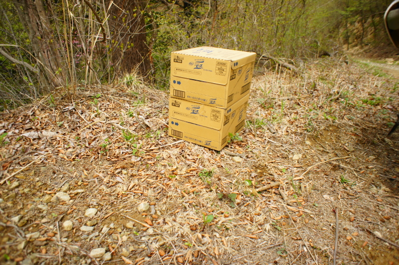 山ノ神林道に出た所に、なぜかダンボールが・・・
