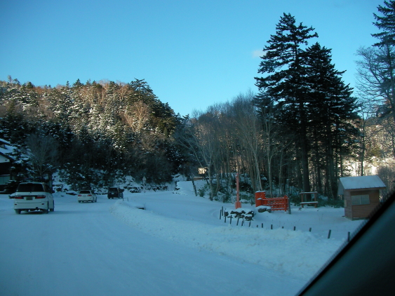 湯元手前まで道路に積雪なし