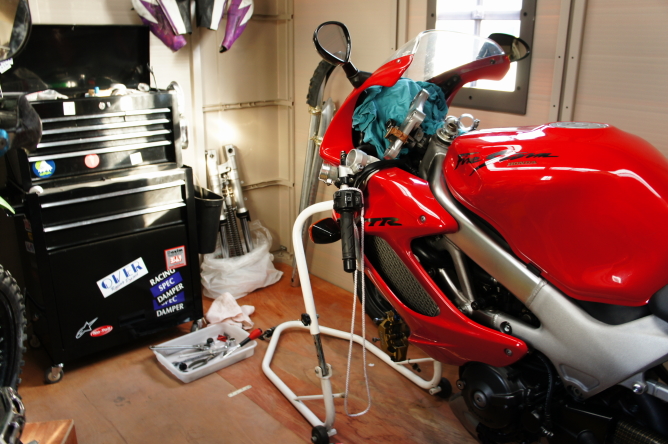 本日は、VTR1000Fのメンテナンス。