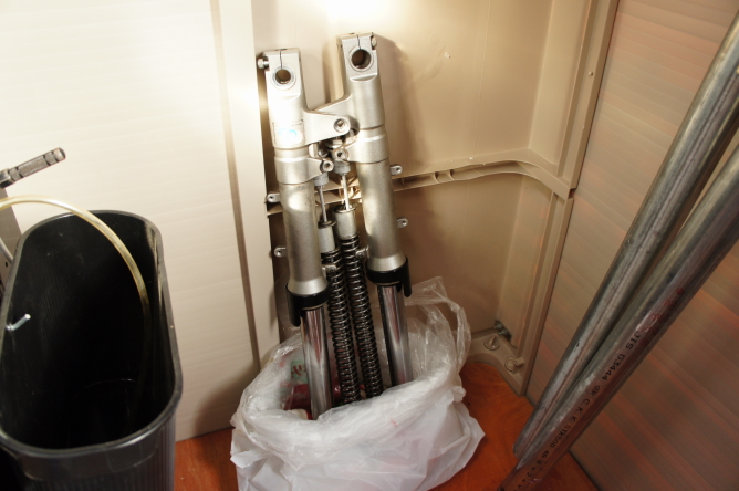 フロントフォークはしばらく逆さにして