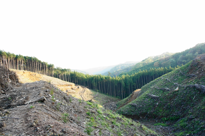 さらに下って、県民の森方面と矢板市方面の分岐点にある伐採跡地へ