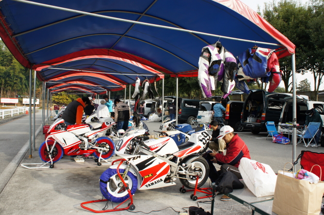 まあ、去年走った筑波ではYSR50?だったかな?リヤブレーキがドラムの旧車で