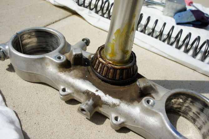 問題は、フロントフォークをオーバーホールしたのに右側だけまだ若干ガタがあるってこと。