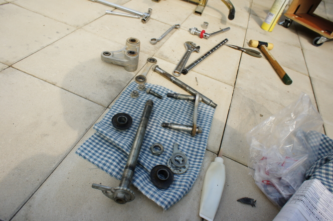 ついでに、ステムのチェックとリアサスリンクのオーバーホール?グリスアップ?も行います。