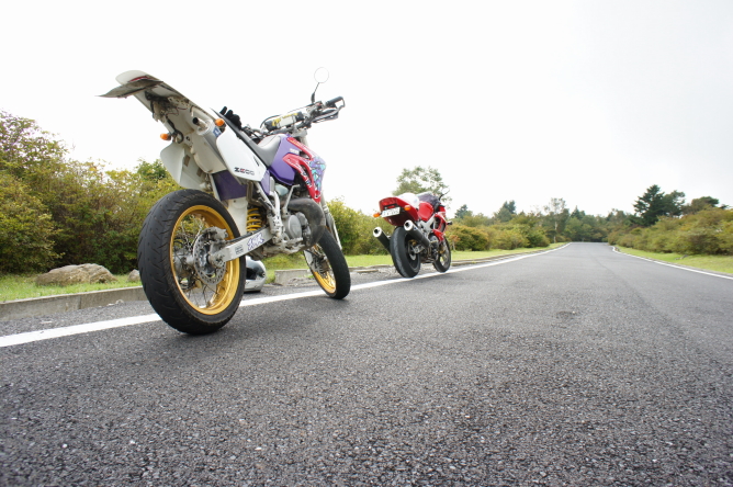 いつもKLX250と一緒に走っているCRM250が、モタード仕様になってVTR1000Fとツーリングです。