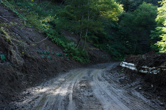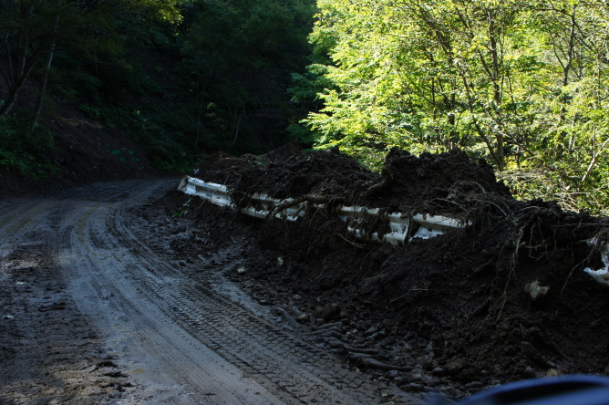 こんな感じの土砂崩れ現場が数箇所あったが、どれも工事は終わっていて通過できた。