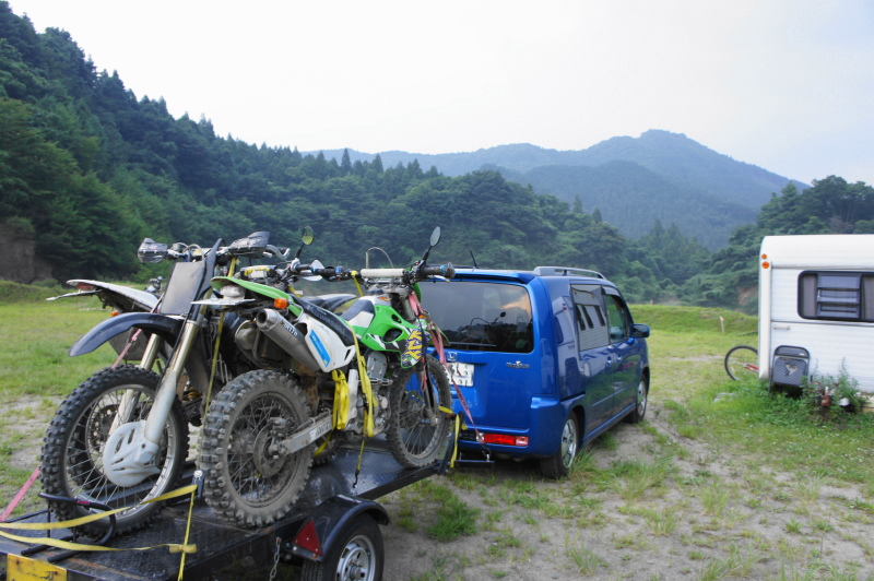 KLX、CRM、CRFの3台をトレーラーに積んでいきます。