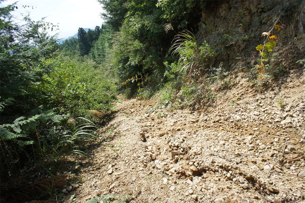 峠を下って、県民の森方面と赤滝方面にわかれるT字路のところにある、最近伐採されたポイントに
