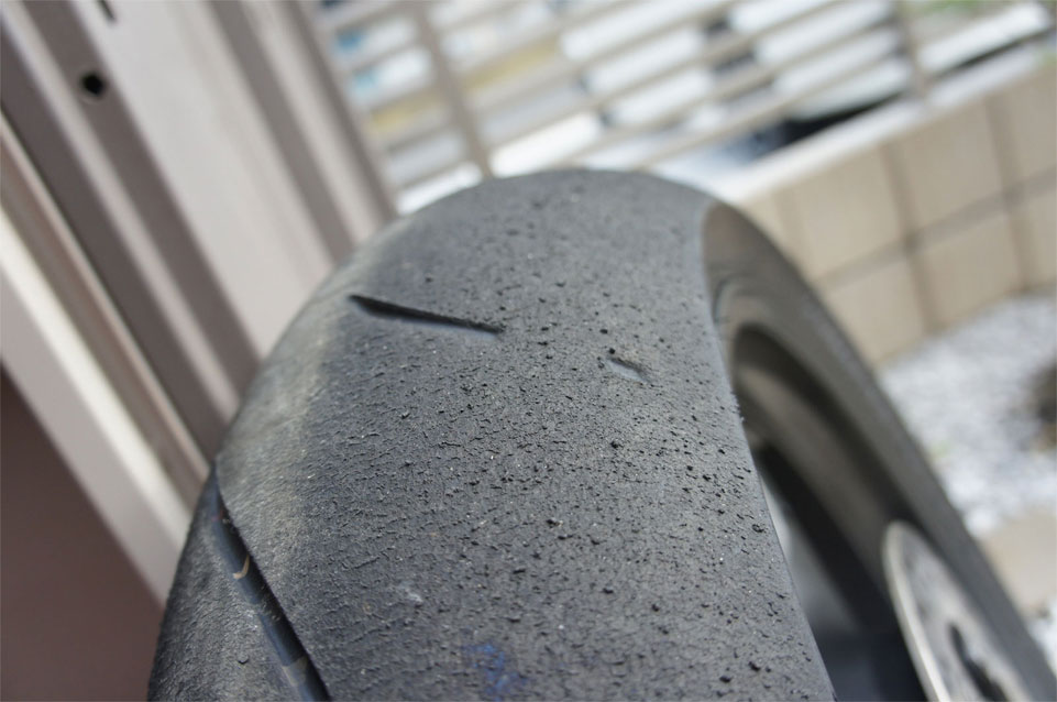 感想:軽い操作感 公道でも鬼グリップ おやおや?一日走っただけでやたら削れているような・・・
