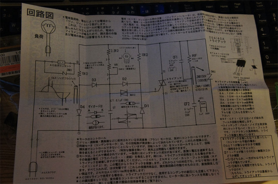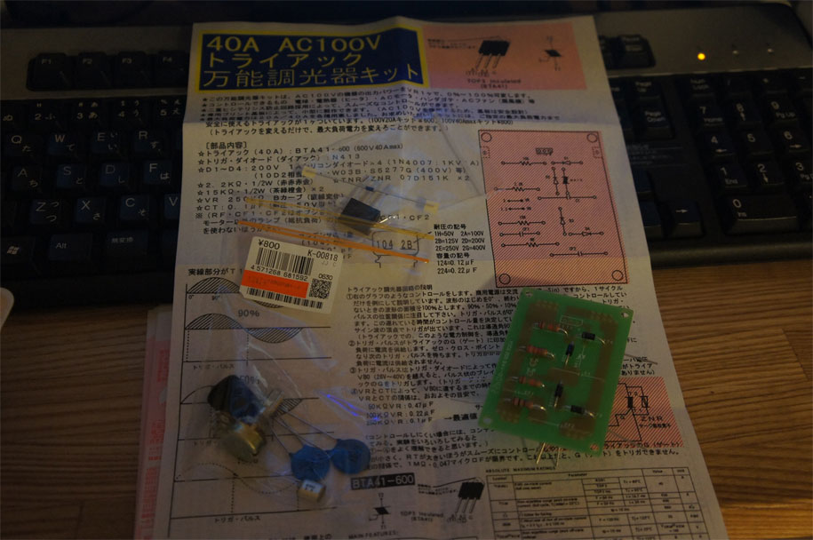 秋月電子通商のトライアック万能調光器キット40Aタイプ 800円+送料500円