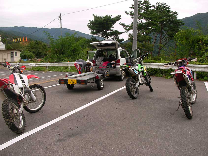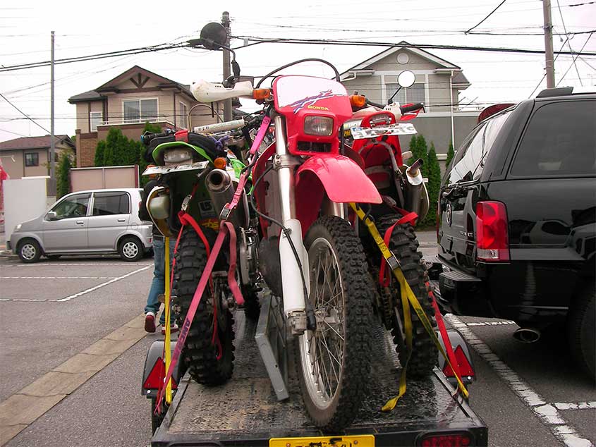 CRM250×2台 KLX1台を無理やり積む。