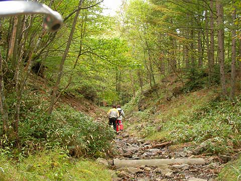 ←途中の沢に降りられる場所にて休憩しようとしたら