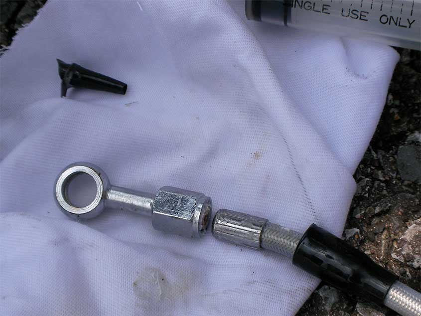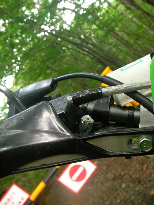 先日破損した、KLXのブレーキホース交換です。状況はこっち。