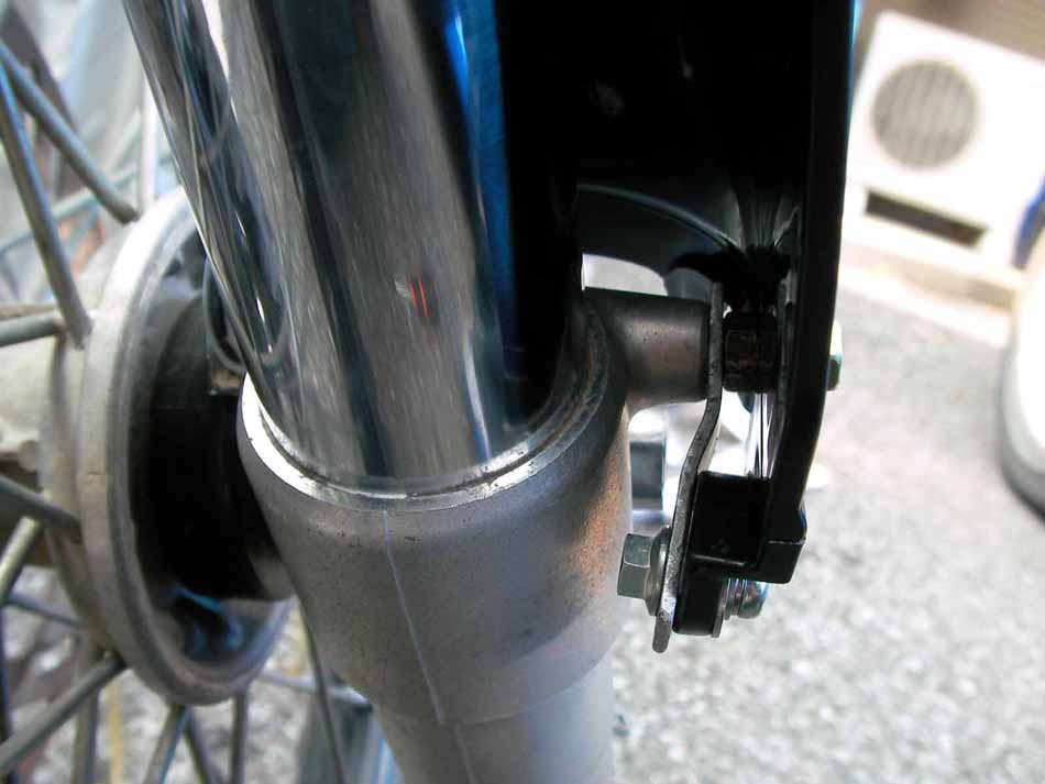 ガードのブレーキホースクランプを買っていませんでしたので、お手製品です。