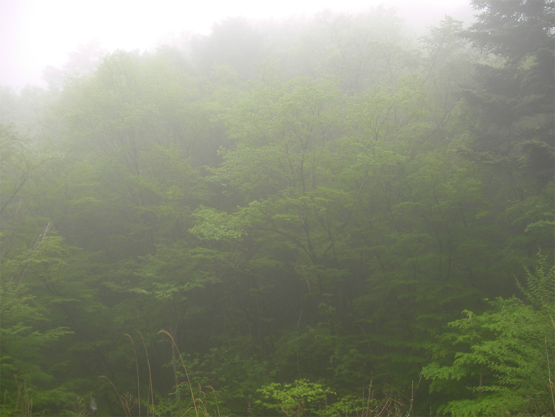 完全に雲の中に入ってしまい、霧雨状態。
